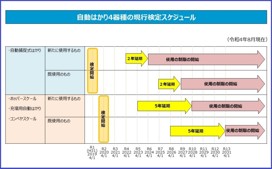 「自動補足式はかり」の使用の制限の開始日が2年間延期されました。
